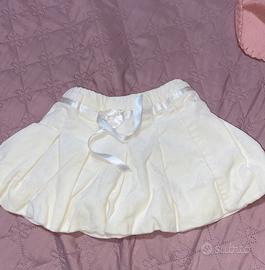 •Gonnellina bianca in camoscio/velluto, taglia 6 mesi, con fiocchetto decorativo, marca Benetton