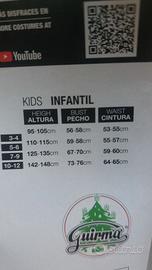 Composto da cappellino con campanellino, casacca con bottoni e cinturone applucati e campanelline e pantaloni abbinati. Taglia 10/12 anni. Altezza fino a 148 cm circa