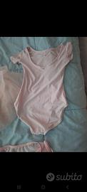 Completo danza classica Doymos 10 anni bambina composto da body mezza manica,tutu' ,gonnellino copribody tutto colore rosa chiaro,Ottimo per danza,saggi, ginnastica artistica, come nuovo