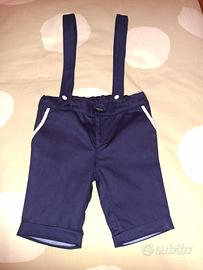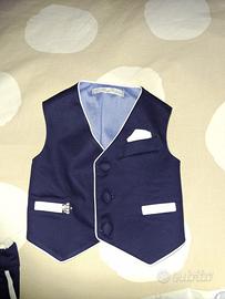 Vendo completo elegante per bambino colore blu scuro composto da pantalone, camicia, gillet e papillon. Ottima sartoria, indossato una sola volta, come nuovo. Taglia 6-9 mesi.