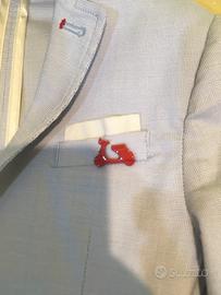 Completo elegante Daniele Alessandrini 18/24 mesi Giacca azzurra con spillina, taglia 24 mesi Pantalone bianco cotone 18 mesi In perfetto stato.