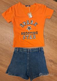 Gonna pantalone in jeans di OVS taglia 13-14 anni 164 cm Maglietta nuova con cartellino con decorazione taglia M (13-14 anni anche la maglietta)