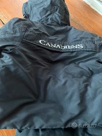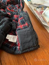 Formato da giacchina e pantaloni apribili sulle gambe. Piumino per 9 mesi ma veste piccolo