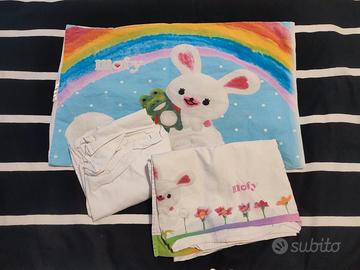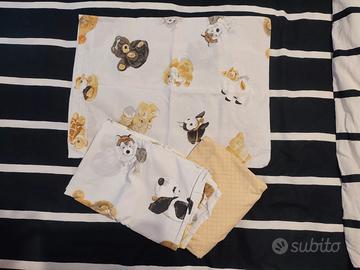 Vendo diversi completi di lenzuola per bimbi: 5€ a completo e 5€ a cuscino; se preso tutto insieme 25€. Dimensione dei cuscini 35*55 cm. Ritiro a mano in zona centro Torino o disponibile per la spedizione con costi a carico dell'acquirente.