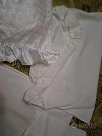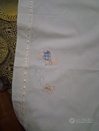 Set di lenzuola e piumino per carrozzina, adatto sia per bambina che per bambino. Il set è realizzato in tessuto bianco con dettagli ricamati.
