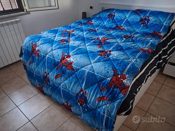 Trapunta,lenzuolo sotto e sopra,federa. Marca Caleffi soggetto Spiderman. Letto una piazza e mezza. Ritiro a mano a Roma zona Infernetto/Casalpalocco