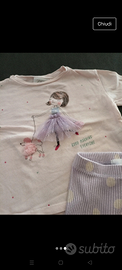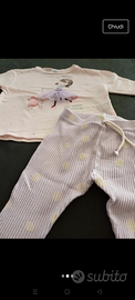 Leggings a costine lilla pois bianco 6/9 mesi T shirt manica lunga 3/6 mesi Usato in ottime condizioni