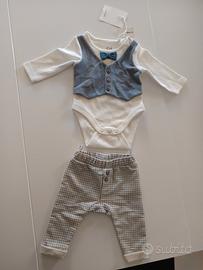 completo neonato nuovo con etichetta, composto da body e pantalone. invernale con pantalone felpato e body in caldo cotone