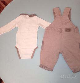 Completo neonato OBAIBI composto da body in cotone a manica lunga e salopette a costine. Taglia 3 mesi, 59 cm. Usato poco.