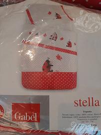 parure lettino composta da coprimaterasso, lenzuola sopra e sotto con federa, trapunta leggere, trapunta invernale .Modello Stella Trudi Gabel .misure trapunta 120x150 cm circa. 100% cotone, anallergico, prodotto in Italia.