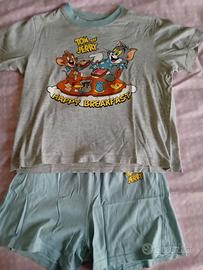 completo tuta Original Marines taglia 6 anni con maglietta mezze maniche e pantaloncino corto estivo con disegno Tom and Jerry in ottime condizioni color grigio e azzurro