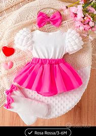 Completo Tre Pezzi per Ragazze con Vestito a Maniche Sfumate, Ricamo Cuore e Fiocco Decorativo, Fascia e Calzettoni Ideale per