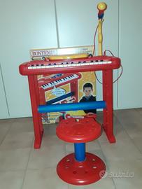 Microfono per la voce. Sgabello regolabile in altezza. Incluse canzoncine da suonare subito. Scatola inclusa. Alimentato a batterie da 3,5 V (non incluse). Dai 3 anni.