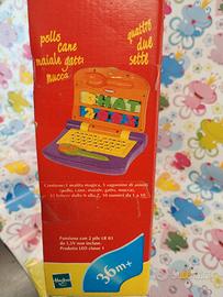 Computerino elettronico Baby Maestro con effetti sonori, che insegna ai bimbi i numeri, le lettere e i nomi degli animali. Adatto dai 36 mesi in su. Marca Hasbro, linea Playskool adatta allo sviluppo delle capacità fisiche e psicologiche del bambino. Risale agli anni 2000 circa, non garantisco la funzionalità attuale (provato circa 5 anni fa, e funzionava). Pile non incluse. Composto da 1.computerino, 1 matita gioco, 5 sagome di animali, 41 lettere e 10 numeri. Non utilizzato, come nuovo.