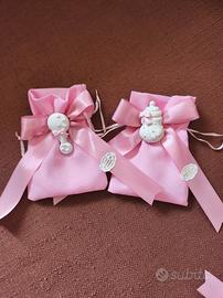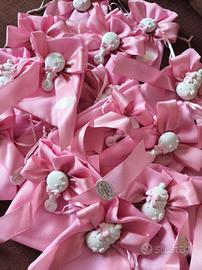 Set composto da 15 magneti (nel dettaglio 9 sognalini e 6 biberon) già confezionati su sacchetti di tessuto rosa porta confetti e nastrino di raso. Dimensionemagnete 2 assort.cm 2,8x4,9h/2,5x5h