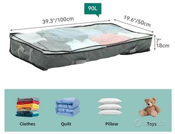 Grande capacità: ogni contenitore sotto il letto ha un volume di 90 litri con dimensioni di 100 x 50 x 18 cm; sono abbastanza grandi per riporre trapunte, lenzuola, lenzuola, trapunte, coperte, cuscini, vestiti fuori stagione e molto altro ancora