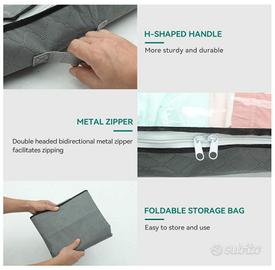 Manico robusto e cerniera: le 4 maniglie rinforzate sulla parte anteriore e sui lati consentono di estrarle in qualsiasi direzione da sotto il letto; la cerniera in acciaio inossidabile di alta qualità garantisce un uso affidabile, mentre le cerniere lisce a due vie facilitano il funzionamento e una chiusura completamente con cerniera protegge gli oggetti da polvere, parassiti e danni da umidità