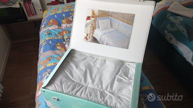 Composto da piumone ricamato + imbottitura estraibile + paracolpi per sponde.