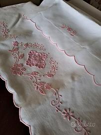 lenzuolino e federa Lino ricamato a mano con applicazioni chiacchierino
