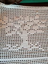 Bellissima coperta per lettino bebè, in cotone, fatta a mano all uncinetto. Con 8 riquadri con vari disegni. Misure 130x90.