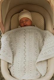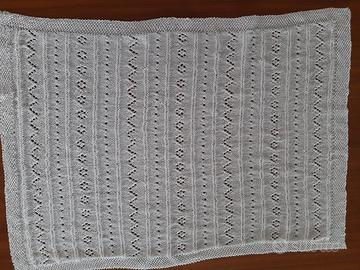 Da neonato, puro cotone mercerizzato, fatta a mano con lavorazione ai ferri, cm 60 x 83, gr 220. Ideale per culla/carrozzina.