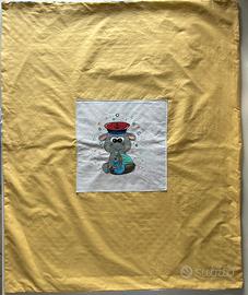 Copertina da neonati misura da carrozzina o passeggino (70x90 cm circa), adatte sia a bambina che bambino. Disegno fatto a mano. Lavabile in lavatrice. Parte frontale 100% cotone, retro in pile