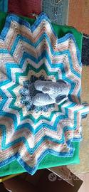 Copertina Bambini in lana fatta a mano all' uncinetto con Elefantino. Nuova . Vendo a 10 euro.