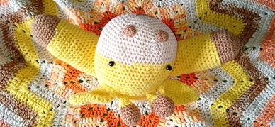 Copertina Bambini in lana fatta a mano all' uncinetto con Giraffa . Nuova . Vendo a 10 euro.