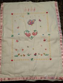 copertina carrozzina completamente fatta a mano con ricamo punto croce