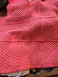 Copertina carrozzina fatta a mano, quadrata colore rosa