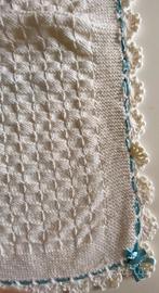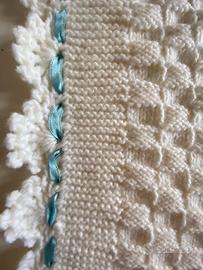 Bellissima copertina in lana fatta a mano con nastro ai lati e fiocco