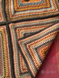 Ho realizzato all’uncinetto questa calda copertina in lana multicolor con gattini, adatta a bimbi come pure a cani o gatti. Misura 70x70 cm., ottima idea regalo.