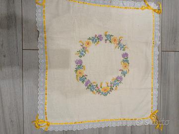 Copertina x culla o lettino fatta e ricamata a mano. in lana il sotto rivestito con stoffa misura cm 72 x72
