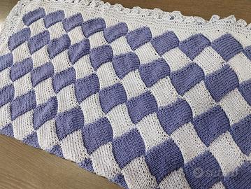 copertina di cotone lavorata a ferri glicine e viola. 70x75