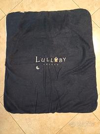 Copertina della Chicco, imbottita,per carrozzina, in pile double- face, blu scuro /bianco, in ottimo stato, con scritta Lullaby Chicco ricamata , completo di custodia L.66 x h.76 , vendo € 10