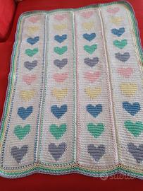 Splendida copertina per neonati realizzata a mano all'uncinetto in filo di puro cotone misura cm 60x80 cm all'incirca. Nuova