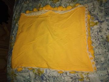 vendo copertina di lana fatta a mano all'uncinetto con pon-pon applicati sopra,mai usata,ancora in confezione originale