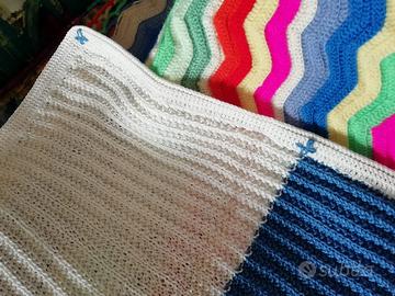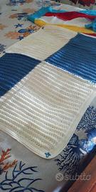 Copertina in cotone fatta a mano Bianca e blu Misure 66x45