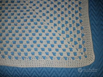 Copertina bebè in puro cotone, lavorata a mano. Traforata evita il soffocamento. Misura cm 80 x 78