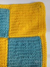 Realizzata a mano con filato 100% acrilico irrestringibile. Misura 47x57 cm.