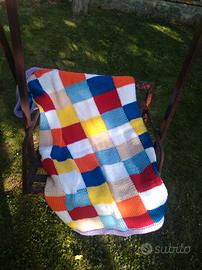 Vendo copertina per bambini realizzata con ferri e lana. Misura cm. 77x60. Le spese di spedizione sono indicative.