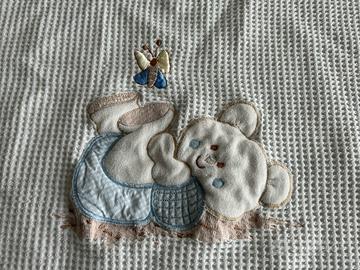 Copertina x lettino x bambino in cotone , lavorazione a nido d’ape con bordino di rifinitura.