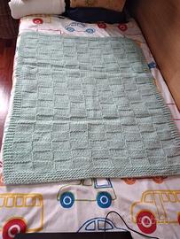 Copertine per culla e carrozzina fatte a mano in lana anallergica, mai usate.