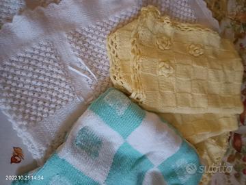 Copertine per baby culla realizzata in lana ad uncinetto, coperta bianca con disegno ad uncinetto per lettino, borsa per ospedale primi giorni per bimba, copertine ad uncinetto
