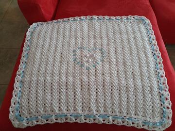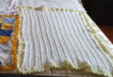 Sei copertine per neonati per carrozzina. Misure 60x80 all'incirca. Nuove. Realizzate a mano con ottimo filato. Vendo in lotti di 3. In omaggio un paio di scarpette sempre realizzate a mano.
