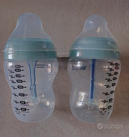 Vendo coppia Biberon Tommee Tippee mesi 0+ da 260 ml con dispositivo anti colica e striscia rilevamento del calore presente sul tubicino anti colica. Condizioni come nuove, usato pochissimo. Per motivi igienici, ovviamente non sono presenti le tettarelle.