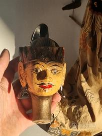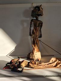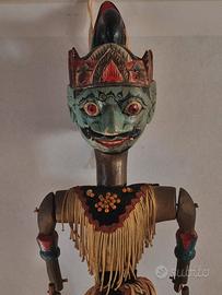 Descrizione: Marionetta asiatica intagliata a mano, con abiti in tessuto e testa decorata. Parte del corpo da riassemblare.