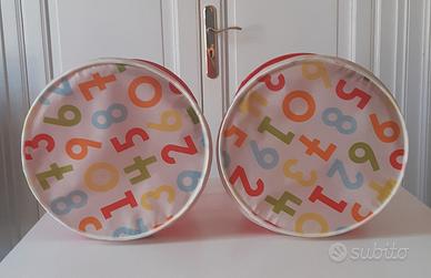 2 Ceste portagiochi Ikea richiudibili in tessuto presentano segni di imperfezioni dovuti all'usura
