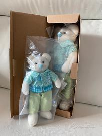 Coppia di Baby Orsetti, marca My Doll, nuovi con etichetta e confezione originale, materiale in pile, colore bianco, abiti colorati removibili, prodotti artigianali, lavorati a mano, articoli fuori produzione, molto carini ed ottima qualità, misure: