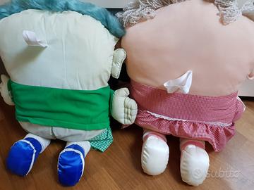 vendo coppia di bambole con gambe penzoloni. Altezza 63cm lerghezza 36 cm.hanno anche un gancetto dietro per essere appesi.
